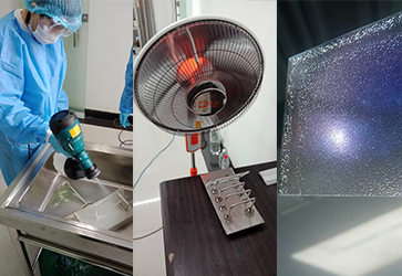 3、噴污染劑:用潔凈小噴壺將所配的污染劑均勻噴于玻璃兩面,涼干(或用電吹風(fēng)吹干),然后置于烘干箱中,60℃下烘干30分鐘,使之干燥,取出放至室溫,備用。